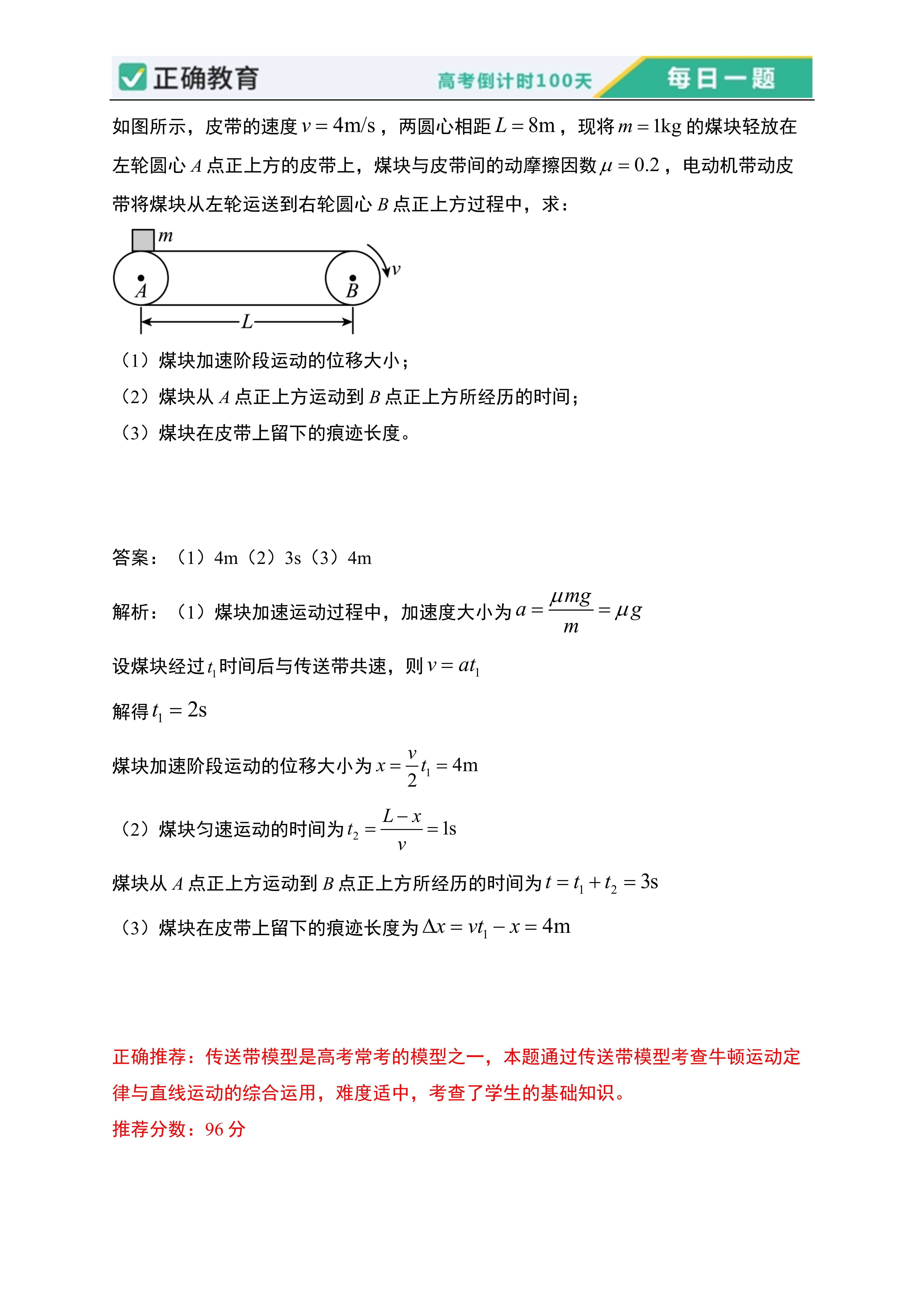 正确推荐:传送带模型是高考常考的模型之一,本题通过传送带模型考查牛顿运动定律与直线运动的综合运用,难度适中,考查了学生的基础知识。 推荐分数:96分