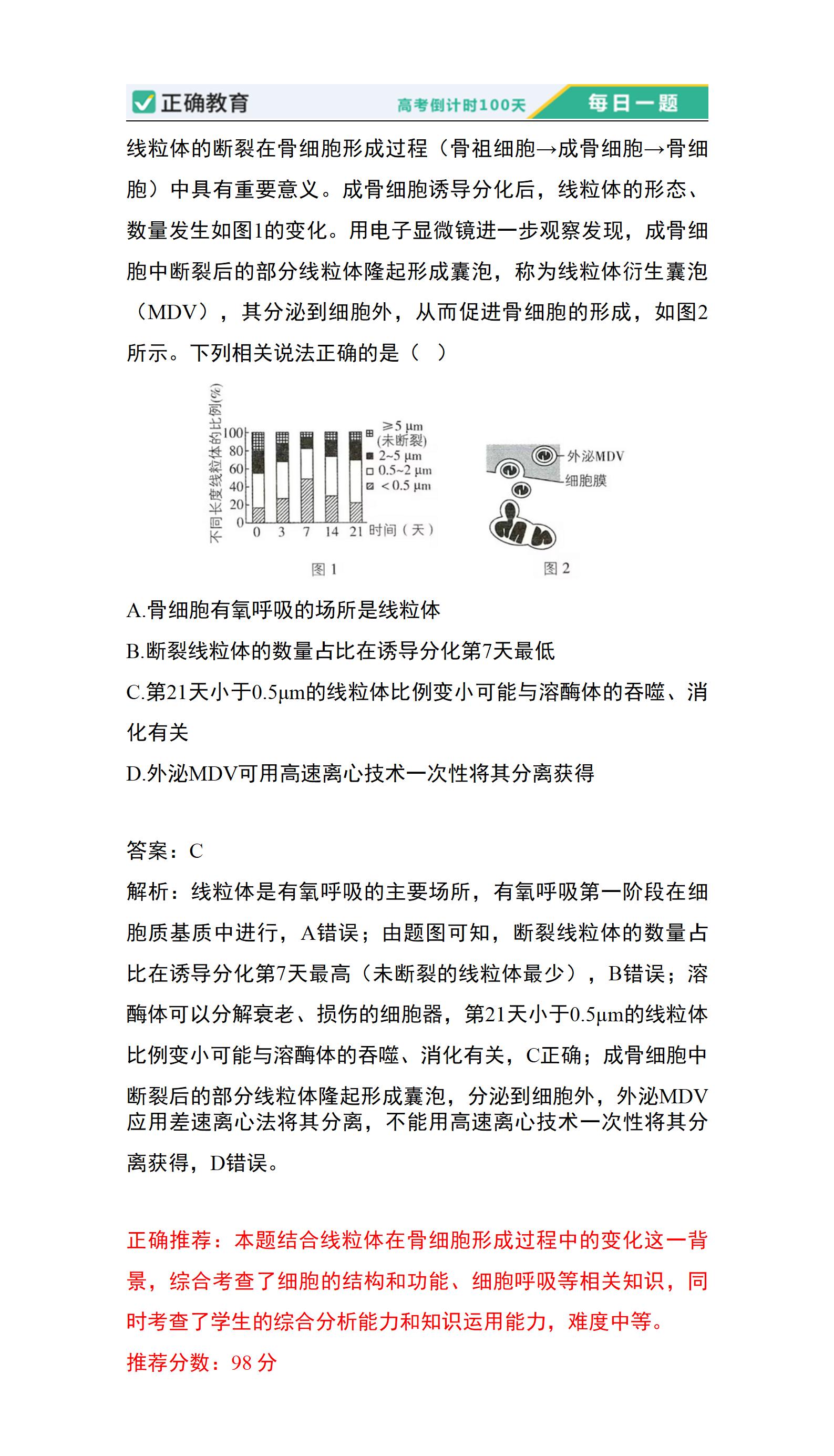 正确推荐:本题结合线粒体在骨细胞形成过程中的变化这一背景,综合考查了细胞的结构和功能、细胞呼吸等相关知识,同时考查了学生的综合分析能力和知识运用能力,难度中等。 推荐分数:98分