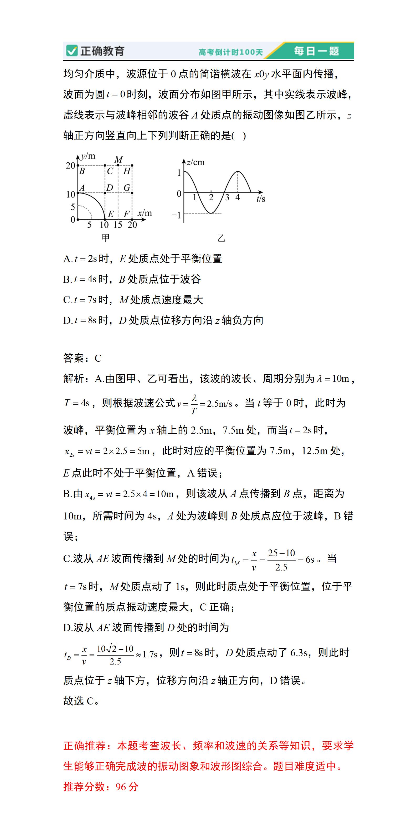 正确推荐:本题考查波长、频率和波速的关系等知识,要求学生能够正确完成波的振动图象和波形图综合。题目难度适中。 推荐分数:96分