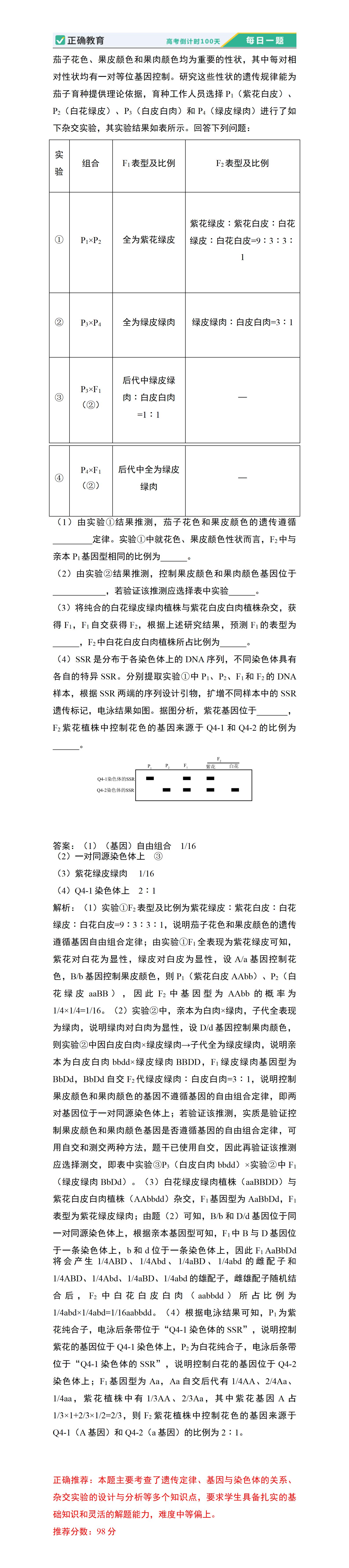 正确推荐:本题主要考查了遗传定律、基因与染色体的关系、杂交实验的设计与分析等多个知识点,要求学生具备扎实的基础知识和灵活的解题能力,难度中等偏上。 推荐分数:98分