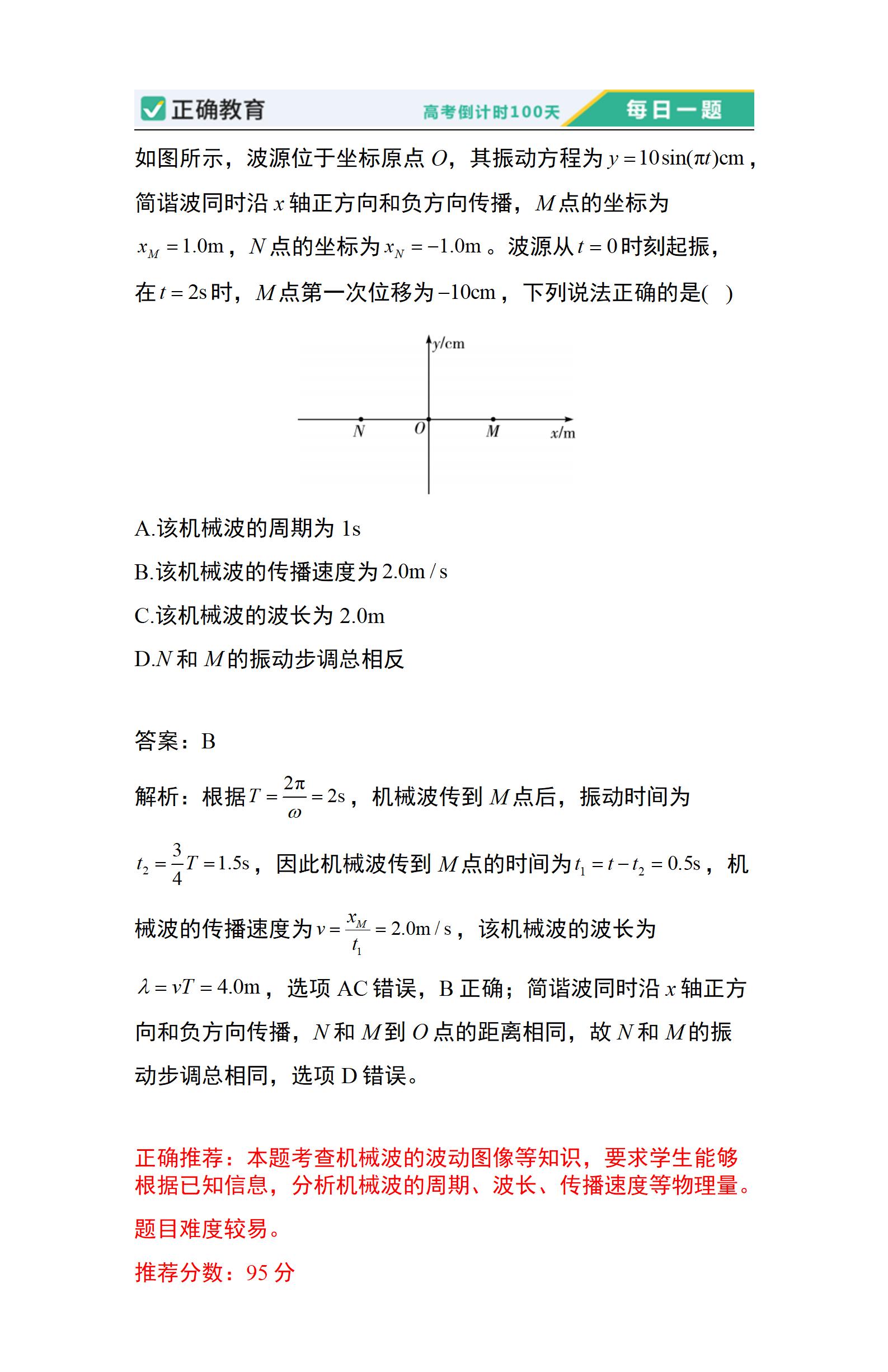 正确推荐:本题考查机械波的波动图像等知识,要求学生能够根据已知信息,分析机械波的周期、波长、传播速度等物理量。题目难度较易。 推荐分数:95分