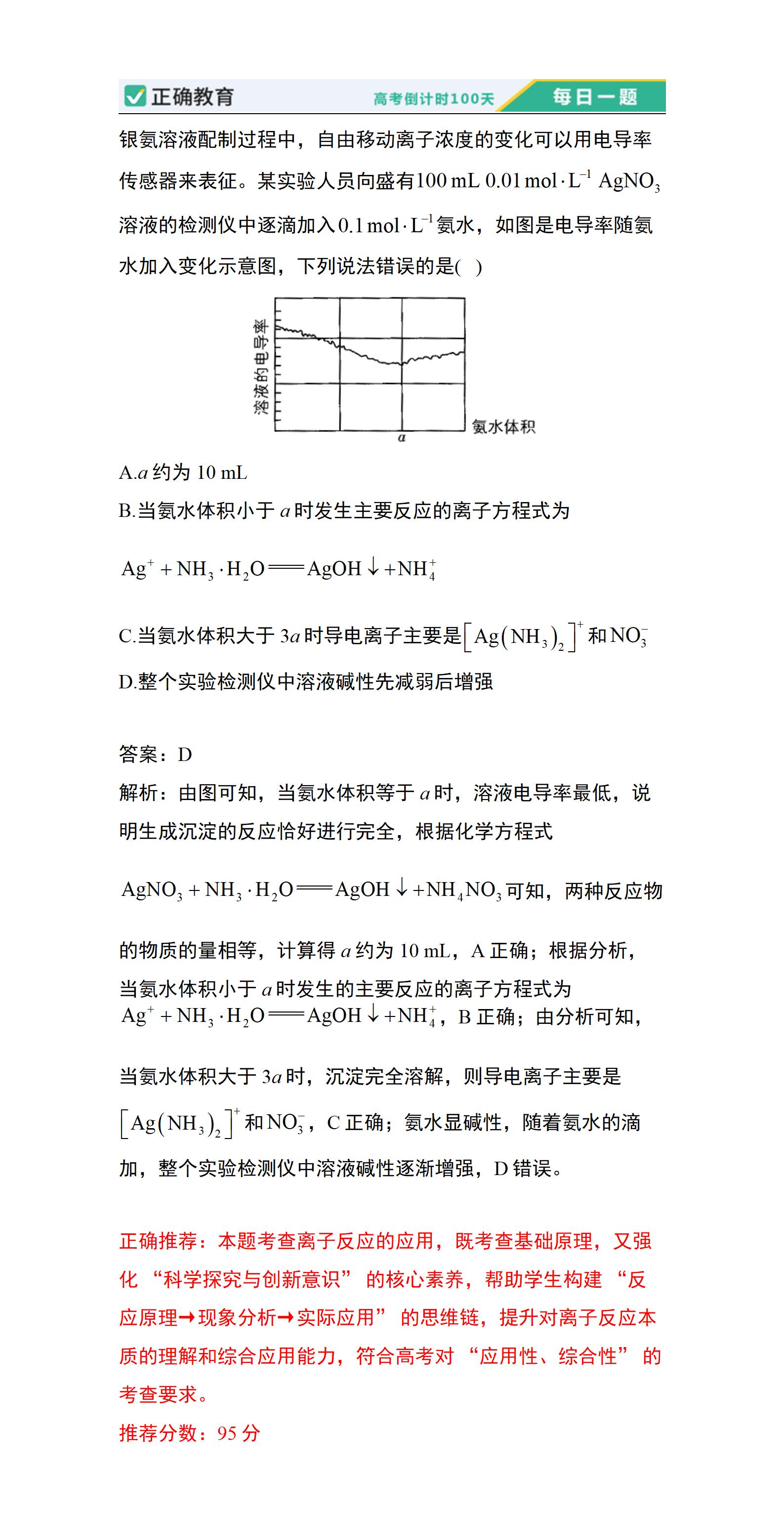 正确推荐:本题考查离子反应的应用,既考查基础原理,又强化 “科学探究与创新意识” 的核心素养,帮助学生构建 “反应原理→现象分析→实际应用” 的思维链,提升对离子反应本质的理解和综合应用能力,符合高考对 “应用性、综合性” 的考查要求。 推荐分数:95分