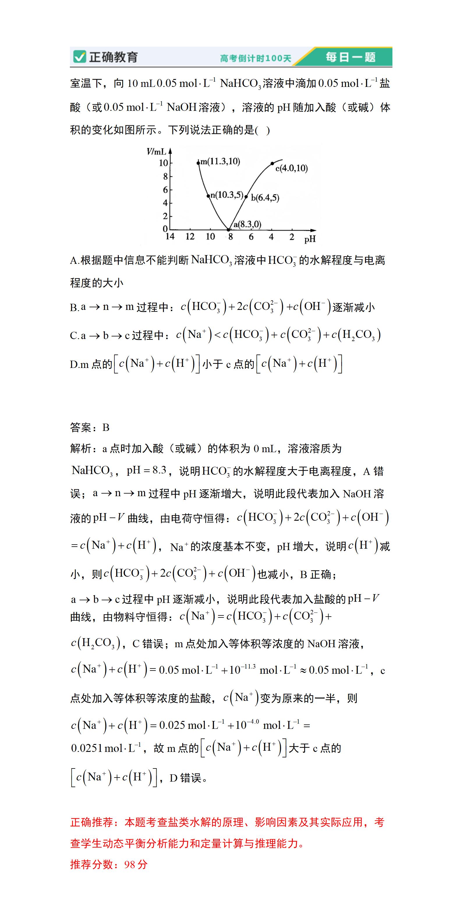 正确推荐:本题考查盐类水解的原理、影响因素及其实际应用,考查学生动态平衡分析能力和定量计算与推理能力。 推荐分数:98分