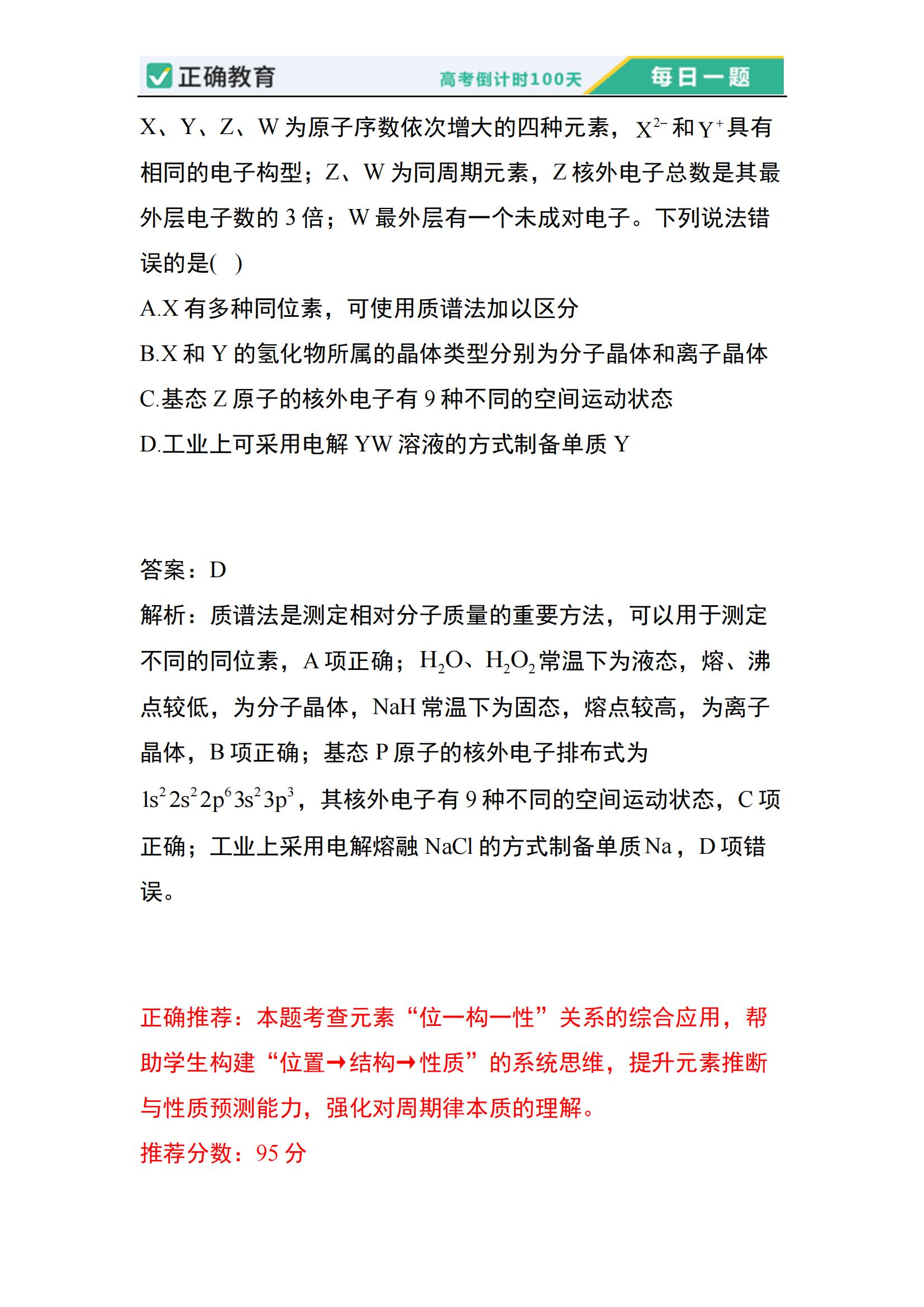 正确推荐:本题考查元素“位一构一性”关系的综合应用,帮助学生构建“位置→结构→性质”的系统思维,提升元素推断与性质预测能力,强化对周期律本质的理解。 推荐分数:95分